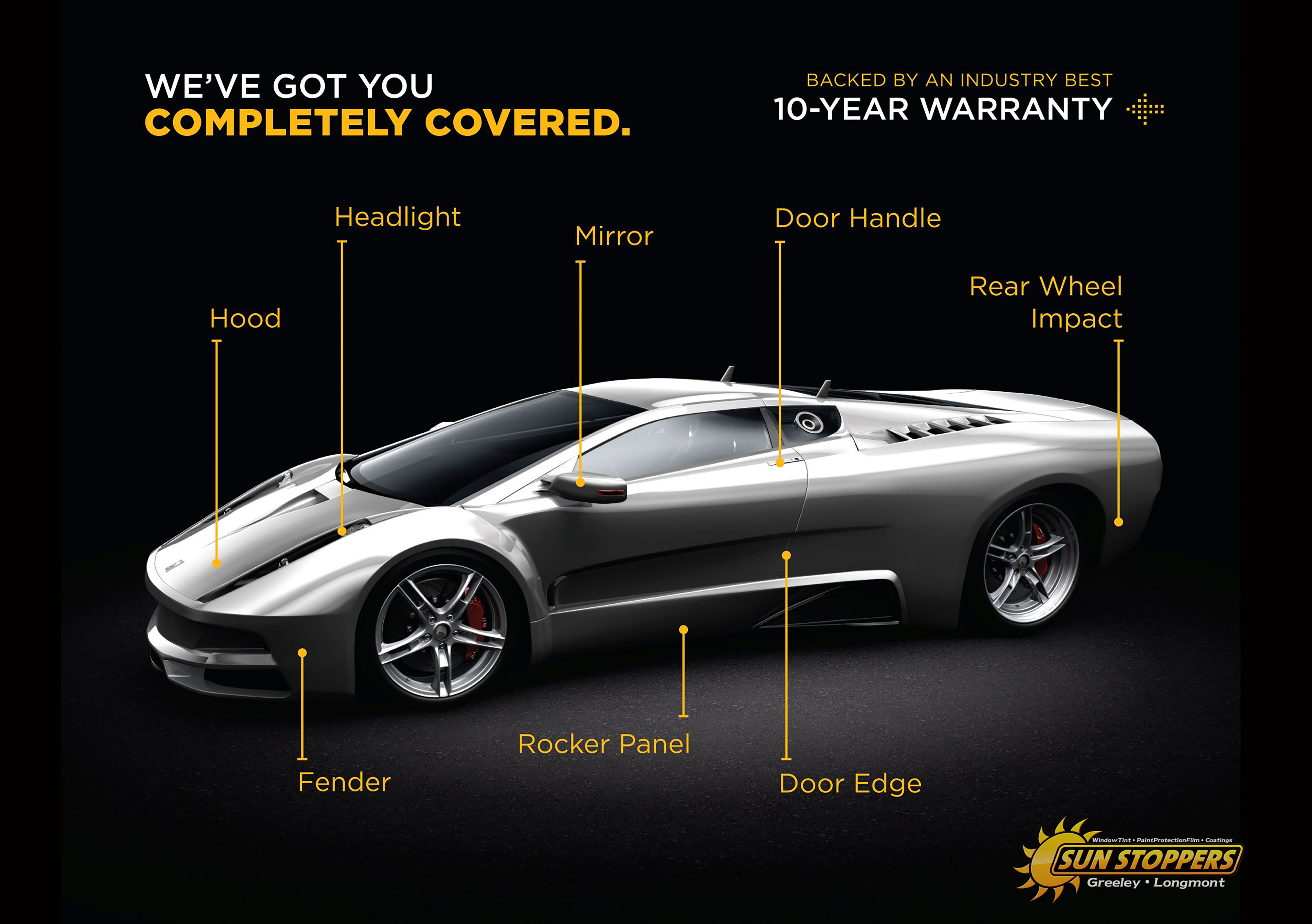 Do you find rock chips to be annoying? Did you know it only takes 1 drive down a Colorado road to get rock chips on the front fascia of your car? We have the perfect solution for you, a clear plastic film that is virtually invisible and will resist rock chipping on your vehicle’s paint. Clear bra is about 90% effective, with exceptions… obviously, a sharp or large object hitting your vehicle at high speeds can possibly tear through the material,
